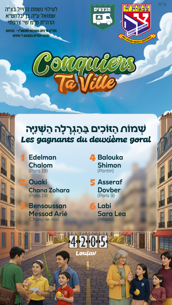 1 Les Mission ! Dou'h des Mivtsaim de Souccoth Je suis un(e)?FilleGarçon Je suis allé à MivtsaimJe suis allé faire participer un maximum de personnes à la Mitsva du Loulav le:Premier jour Deuxième jourTroisième jourQuatrième jourSixième jourSeptième jour Nombre de personnes Nombre de guides distribués Nom et Prénom Nom Prénom EcoleVeuillez choisir votre écoleAccil - LevalloisAlef Beth - S. MandéAlef Beth ChaoulAlliance - Pavillons-Sous-BoisAlliance - Paris 16Alliance Rachi - Paris 17Aquiba - StrasbourgBeth Aaron - ParisBeth Chmouel MarseilleBeth Hanna - StrasbourgBeth Hanna Filles - ParisBeth Hanna Garçons - ParisBeth Haya Mouchka - MarseilleBeth HillelBeth Menahem – FontenayBeth Menahem – LyonBeth Myriam - ParisBeth Rivkah - YerresBeth Rivkah Primaire Garçons - YerresBeth Israel - EpinayBnei Elazar - MarseilleBordeaux Chneor Filles - AubervilliersChneor Garcons - AubervilliersCohen TenoudjiGan de CaenEcole Juive de CannesEcole Juive de LyonEcole Juive de MontpelierEtz HaimGan Ami - MarseilleGan Rachi - ToulouseGan Yossef - BordeauxGan (rue petit) - ParisGan Sinaï - ParisGan Heikhal Menahem - ParisGan Pardess 'Hannah - MontrougeGan Pardesse 'Hanna - Choisy-le-RoiGan Beth Menahem – FontenayGan Menahem - Levallois Ganenou - ParisGueoulat Israël - SarcellesHaya Mouchka - Bry sur MarneHaya Mouchka - MarseilleHatikva - LyonHeder - BrunoyHeder - LyonHeder - NiceHeder - StrasbourgHeder Net - OnlineHeder Chneor - AubervilliersHeder KLC - MarseilleHeder La Source - MarseilleHeder Loubavitch - ParisHeder Loubavitch Annelets - ParisHeikhal Menahem - ParisKerem Menahem - NiceKi Tov - ParisLehaim - La Garenne-colombesLes Benjamins - PantinLucien de Hirsch - Paris 19La Maison de nos enfants - S.MandéMaamar Mordekhai - MarseilleMaimmonide - BoulogneMarianne Picard - Neuilly Sur SeineMerkaz Ohr JosephMerkaz Hatorah - GagnyMetzMontpellierNathanel - MetzNigri - OnlineNer Israel - ThiaisOhel BarouchOr Torah - NiceOhr Menahem - GrenobleOhr Menahem - Villiers sur MarneOhr Hatorah - MarseilleOhalé Menahem - DijonOzar Hatorah - 11èmeOzar Hatorah - 13èmeOzar Hatorah - CréteilOzar Hatorah - SarcellesPardess ‘Hannah - MontrougePerpignanSinaï - ParisTsohar - CréteilYabné Primaire – ParisYabné Primaire – MarseilleYaguel Yaacov - MontrougeYad Mordekhai - ParisAutre ClasseClassePetit GanGrand GanCp - כיתה אCe1 - כיתה בCe2 - כיתה גCm1 - כיתה דCm2 - כיתה ה6ème - כיתה ו5ème - כיתה ז Ajouter d'autres enfantsOui Deuxième enfant Prénom du deuxième enfant Ecole du deuxième enfantVeuillez choisir votre écoleAccil - LevalloisAlef Beth - S. MandéAlef Beth ChaoulAlliance - Pavillons-Sous-BoisAlliance - Paris 16Alliance Rachi - Paris 17Aquiba - StrasbourgBeth Aaron - ParisBeth Chmouel MarseilleBeth Hanna - StrasbourgBeth Hanna Filles - ParisBeth Hanna Garçons - ParisBeth Haya Mouchka - MarseilleBeth HillelBeth Menahem – FontenayBeth Menahem – LyonBeth Myriam - ParisBeth Rivkah - YerresBeth Rivkah Primaire Garçons - YerresBeth Israel - EpinayBnei Elazar - MarseilleBordeaux Chneor Filles - AubervilliersChneor Garcons - AubervilliersCohen TenoudjiGan de CaenEcole Juive de CannesEcole Juive de LyonEcole Juive de MontpelierEtz HaimGan Ami - MarseilleGan Rachi - ToulouseGan Yossef - BordeauxGan (rue petit) - ParisGan Sinaï - ParisGan Heikhal Menahem - ParisGan Pardess 'Hannah - MontrougeGan Pardesse 'Hanna - Choisy-le-RoiGan Beth Menahem – FontenayGan Menahem - Levallois Ganenou - ParisGueoulat Israël - SarcellesHaya Mouchka - Bry sur MarneHaya Mouchka - MarseilleHatikva - LyonHeder - BrunoyHeder - LyonHeder - NiceHeder - StrasbourgHeder Net - OnlineHeder Chneor - AubervilliersHeder KLC - MarseilleHeder La Source - MarseilleHeder Loubavitch - ParisHeder Loubavitch Annelets - ParisHeikhal Menahem - ParisKerem Menahem - NiceKi Tov - ParisLehaim - La Garenne-colombesLes Benjamins - PantinLucien de Hirsch - Paris 19La Maison de nos enfants - S.MandéMaamar Mordekhai - MarseilleMaimmonide - BoulogneMarianne Picard - Neuilly Sur SeineMerkaz Ohr JosephMerkaz Hatorah - GagnyMetzMontpellierNathanel - MetzNigri - OnlineNer Israel - ThiaisOhel BarouchOr Torah - NiceOhr Menahem - GrenobleOhr Menahem - Villiers sur MarneOhr Hatorah - MarseilleOhalé Menahem - DijonOzar Hatorah - 11èmeOzar Hatorah - 13èmeOzar Hatorah - CréteilOzar Hatorah - SarcellesPardess ‘Hannah - MontrougePerpignanSinaï - ParisTsohar - CréteilYabné Primaire – ParisYabné Primaire – MarseilleYaguel Yaacov - MontrougeYad Mordekhai - ParisAutre Classe du deuxième enfantClassePetit GanGrand GanCp - כיתה אCe1 - כיתה בCe2 - כיתה גCm1 - כיתה דCm2 - כיתה ה6ème - כיתה ו5ème - כיתה ז Troisième enfant Prénom du Troisième enfant Ecole du Troisième enfantVeuillez choisir votre écoleAccil - LevalloisAlef Beth - S. MandéAlef Beth ChaoulAlliance - Pavillons-Sous-BoisAlliance - Paris 16Alliance Rachi - Paris 17Aquiba - StrasbourgBeth Aaron - ParisBeth Chmouel MarseilleBeth Hanna - StrasbourgBeth Hanna Filles - ParisBeth Hanna Garçons - ParisBeth Haya Mouchka - MarseilleBeth HillelBeth Menahem – FontenayBeth Menahem – LyonBeth Myriam - ParisBeth Rivkah - YerresBeth Rivkah Primaire Garçons - YerresBeth Israel - EpinayBnei Elazar - MarseilleBordeaux Chneor Filles - AubervilliersChneor Garcons - AubervilliersCohen TenoudjiGan de CaenEcole Juive de CannesEcole Juive de LyonEcole Juive de MontpelierEtz HaimGan Ami - MarseilleGan Rachi - ToulouseGan Yossef - BordeauxGan (rue petit) - ParisGan Sinaï - ParisGan Heikhal Menahem - ParisGan Pardess 'Hannah - MontrougeGan Pardesse 'Hanna - Choisy-le-RoiGan Beth Menahem – FontenayGan Menahem - Levallois Ganenou - ParisGueoulat Israël - SarcellesHaya Mouchka - Bry sur MarneHaya Mouchka - MarseilleHatikva - LyonHeder - BrunoyHeder - LyonHeder - NiceHeder - StrasbourgHeder Net - OnlineHeder Chneor - AubervilliersHeder KLC - MarseilleHeder La Source - MarseilleHeder Loubavitch - ParisHeder Loubavitch Annel